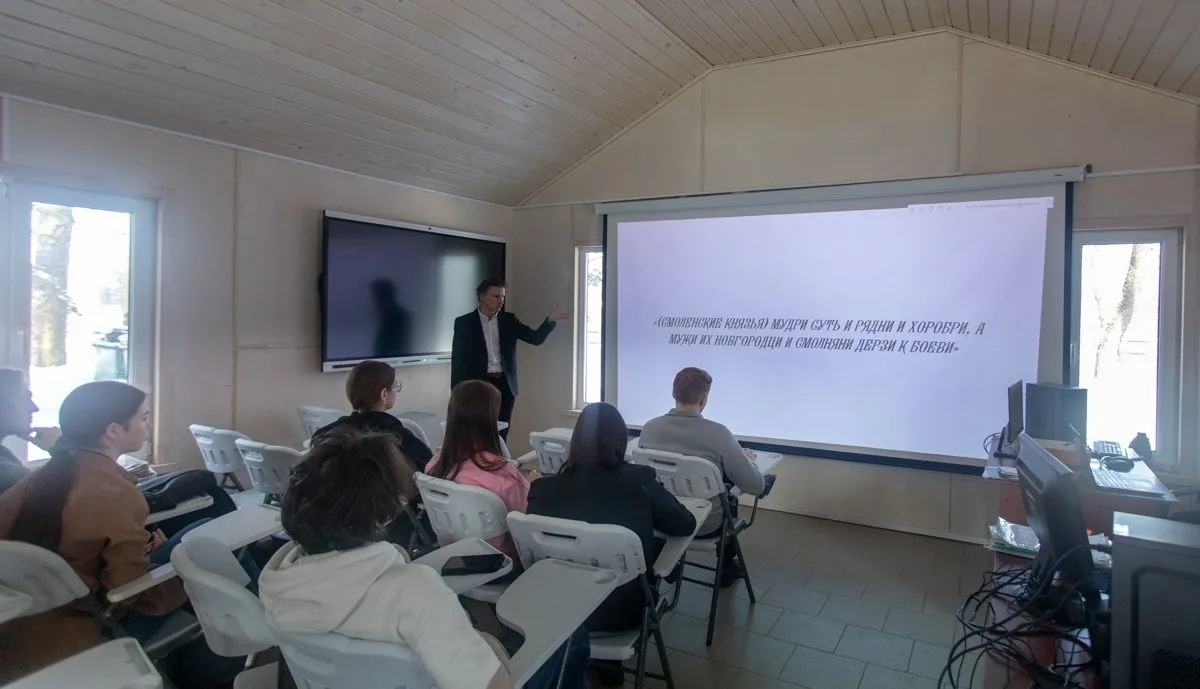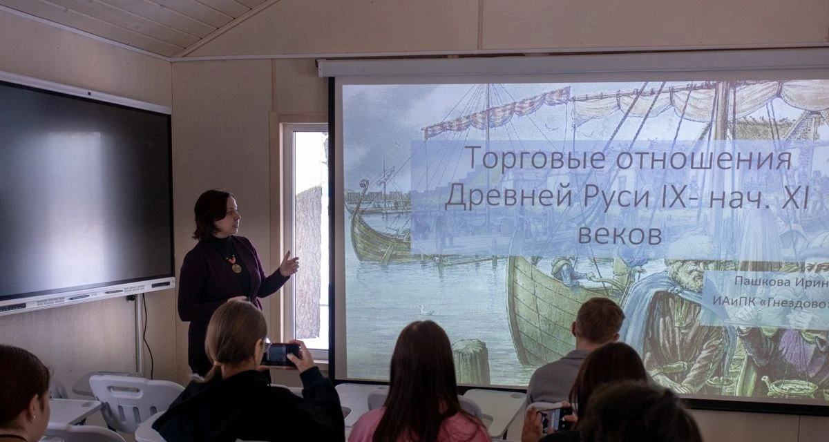 Сначала ребята побывали на лекции историка, преподавателя СмолГУ Михаила Голаева, который рассказал о политическом развитии Смоленской земли в домонгольский период. Сотрудник музея Ирина Пашкова обратила внимание на связь политики и торговли, рассмотрев торговые отношения Древней Руси в IX–XI веках.