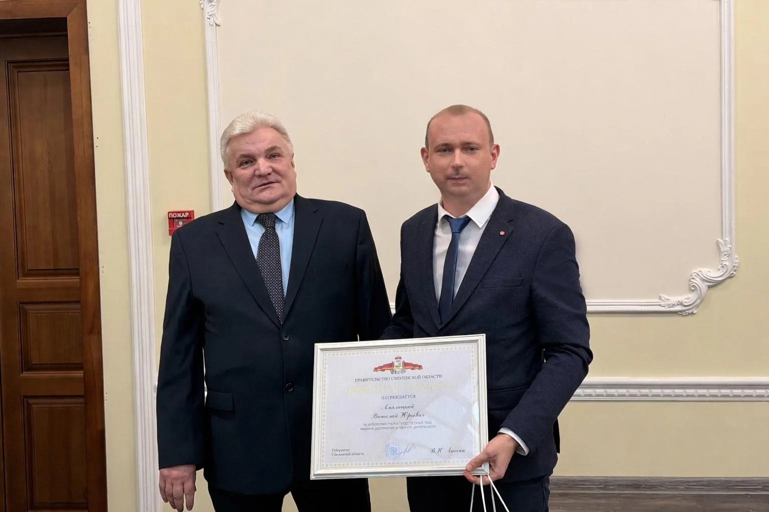 Благодарственные письма Губернатора Смоленской области вручены: