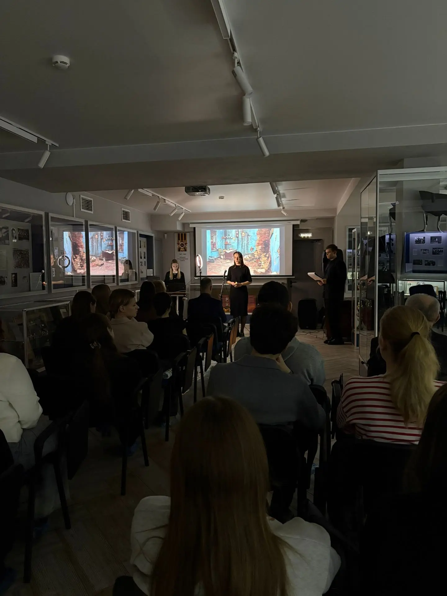 К сожалению, зал не смог вместить всех желающих посмотреть фильм и, поэтому, показ будет продолжен в аудиториях и общественных местах нашего университета.