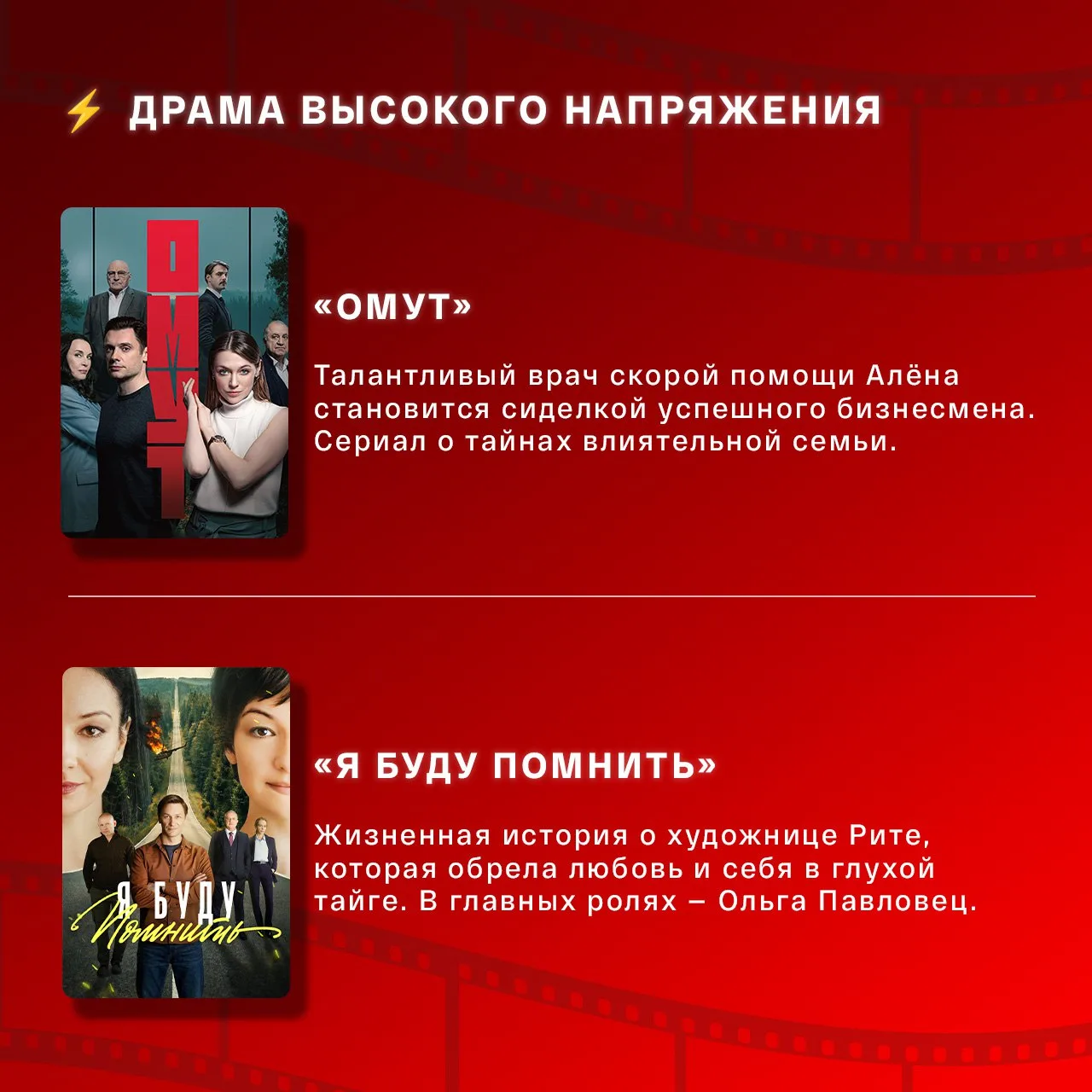 От захватывающей мелодрамы «Я буду помнить» до важного документального фильма «Предательство» и субботней лёгкой истории «Счастье с доставкой».