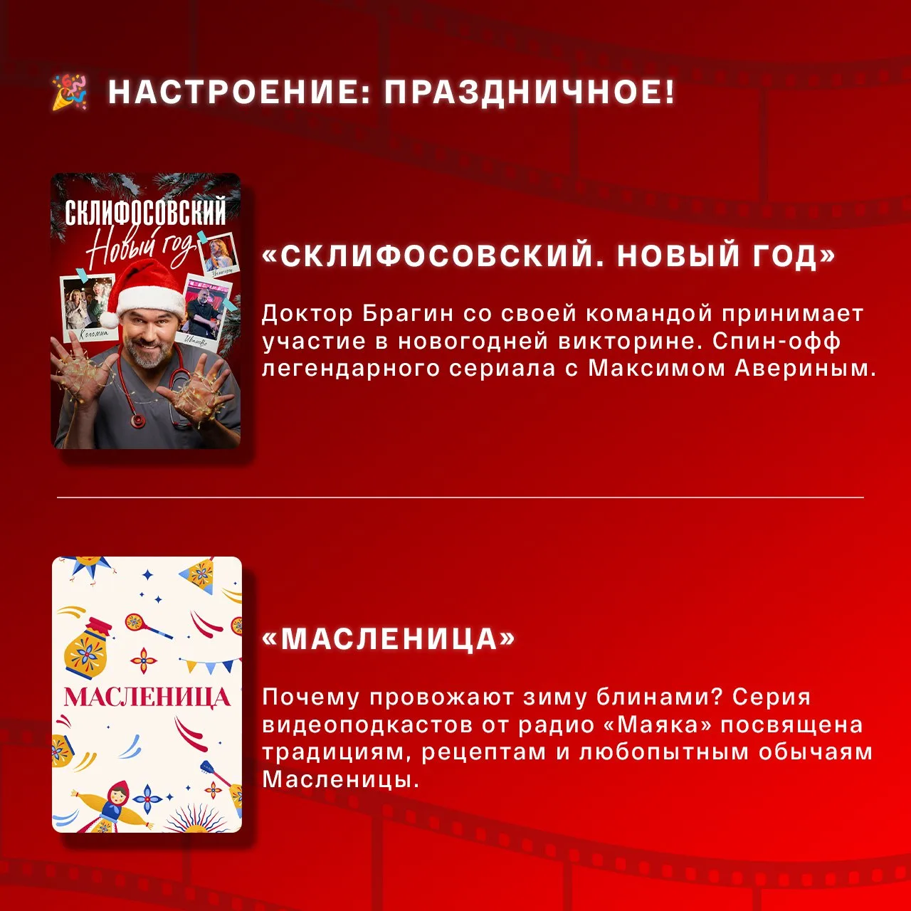 Мы уже собрали для вас достойные варианты. А вам осталось только выбрать настроение и зайти на медиаплатформу «Смотрим».