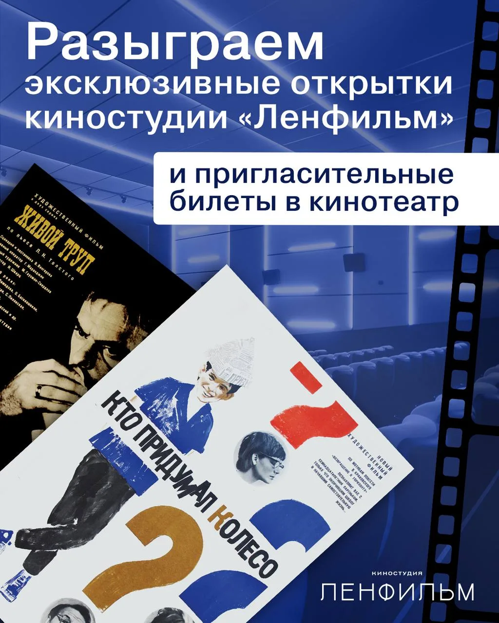 🎟 Напоминаем о нашем конкурсе совместно с «Ленфильм»: розыгрыш билетов в кино и эксклюзивных открыток подходит к концу — итоги подведём уже завтра.