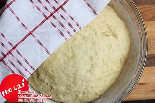 Работаем очень осторожно и медленно. У нас получилось гладкое некрутое тесто. Закрываем его полотенцем и убираем в теплое место. Идеальная температура для подхода дрожжей – +27 градусов, поэтому не надо ставить тесто в слишком жаркое место.