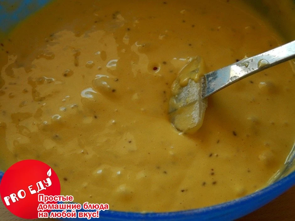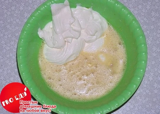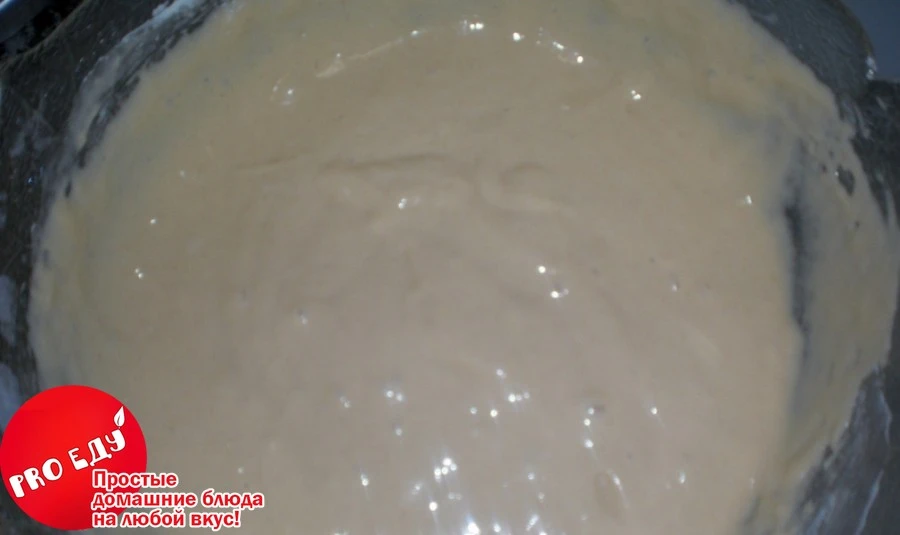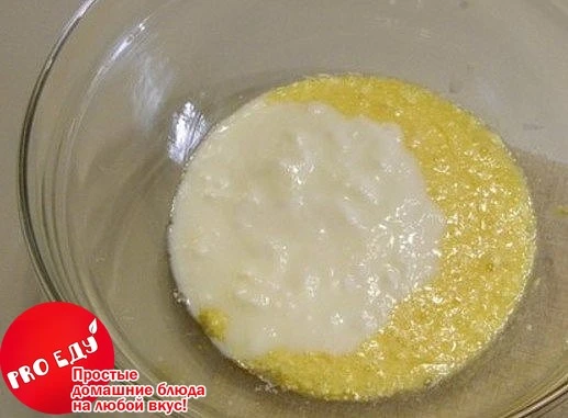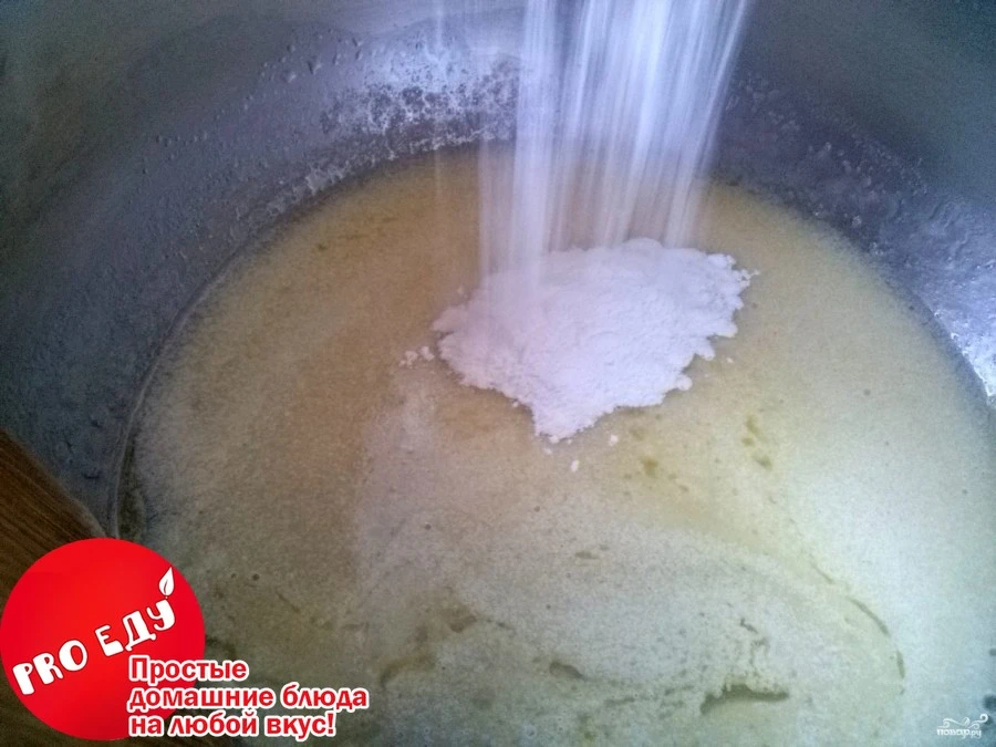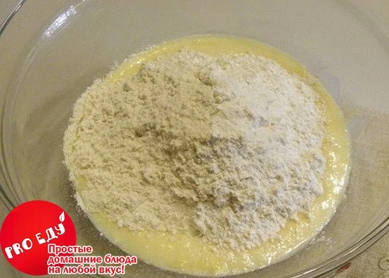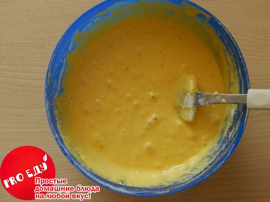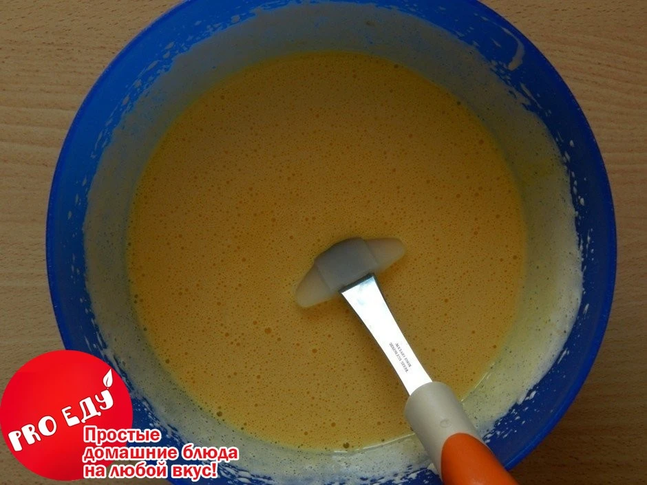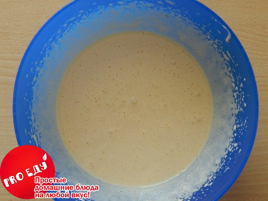 2. В получившуюся смесь молока и муки добавить яйца, тщательно перемешать.