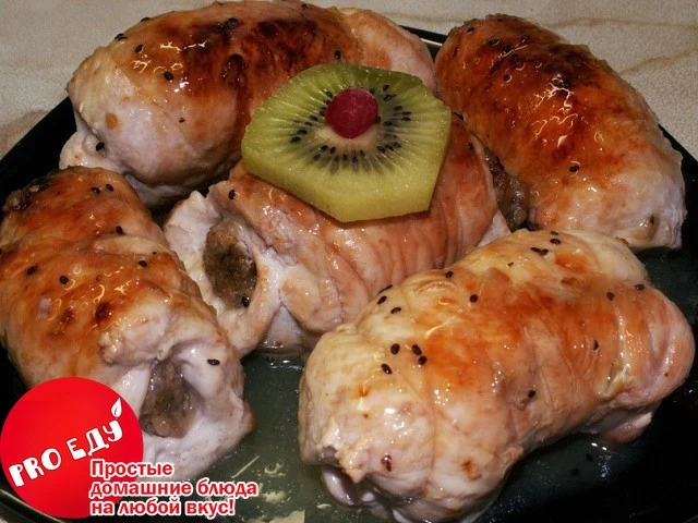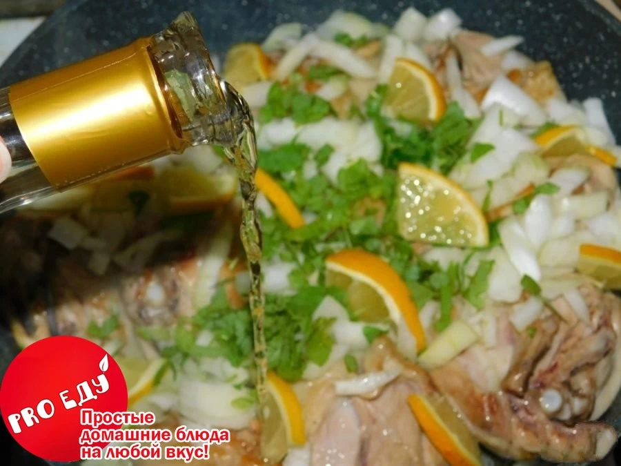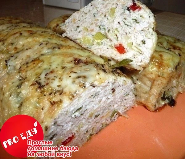 3. Куриное филе нарезать на длинные полоски. Выложить к овощам.