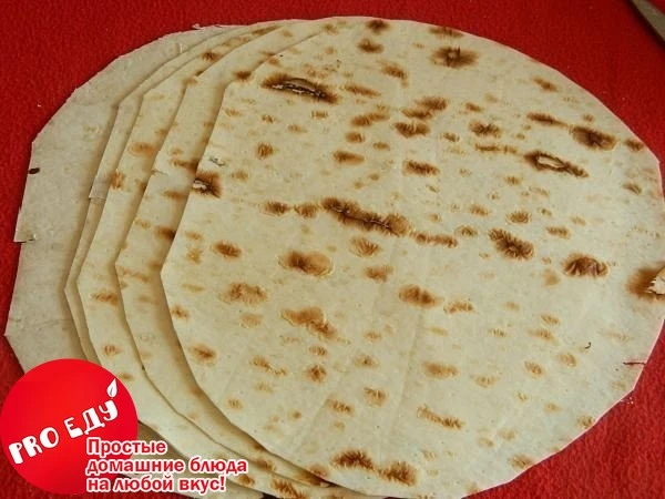 У меня получилось семь круглых лепешек. Но, если вы хотите сделать пирог по пышнее, то можете взять две три упаковки. Тогда масса ингредиентов, естественно увеличится.