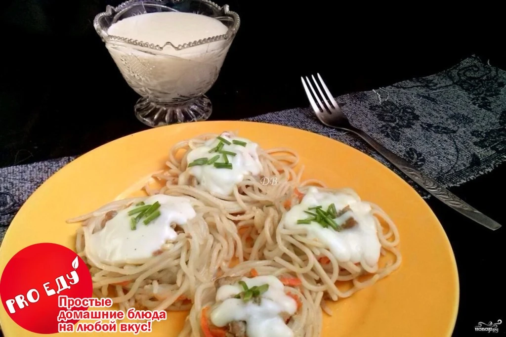 Мясо и капусту пропускаем через мясорубку. Солим, перчим, добавляем сметану и желток, белок не используем. Перемешиваем.