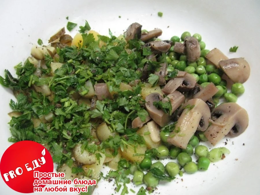 4. Все перемешиваем, солим и перчим по вкусу. Можно добавить немного оливкового масла, если салат покажется сухим.