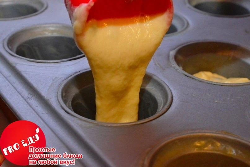 Вынимаем из холодильника формочки. На одну треть заполняем их тестом.
