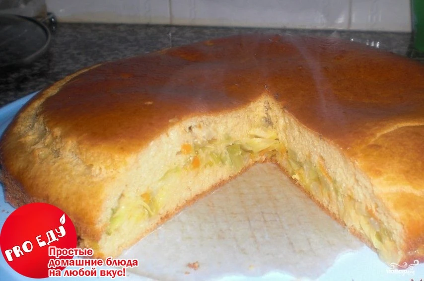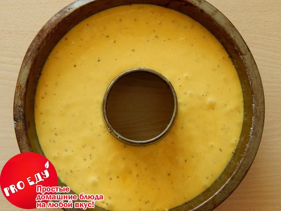 Духовку разогрейте до 200 градусом. Отправляйте пирог в духовку и выпекайте минут двадцать тридцать, пока не образуется золотистая корочка.