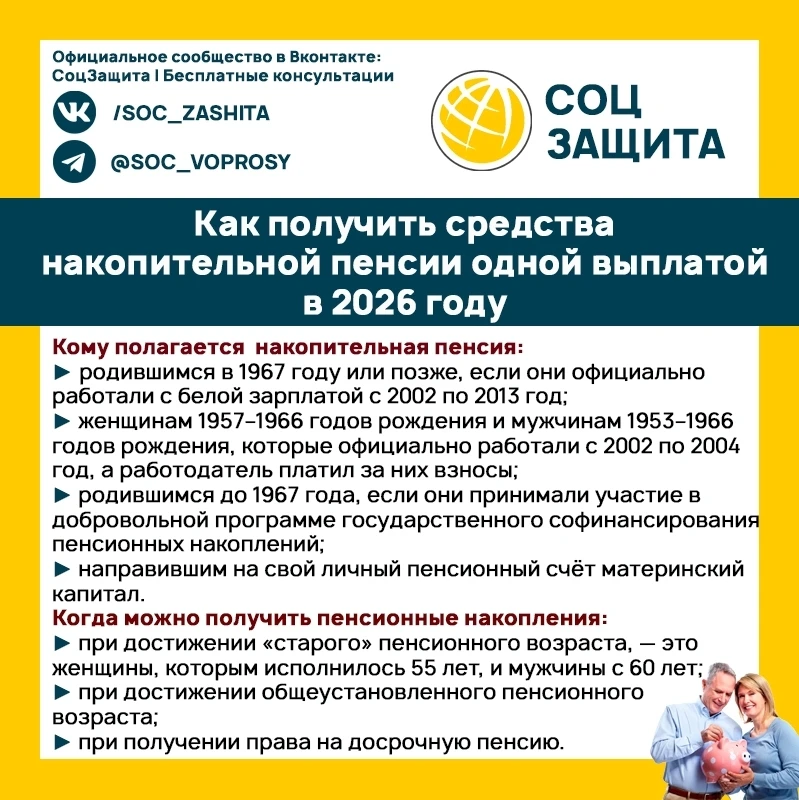 Пенсионные накопления разовой выплатой в 2026 году: кто может претендовать?