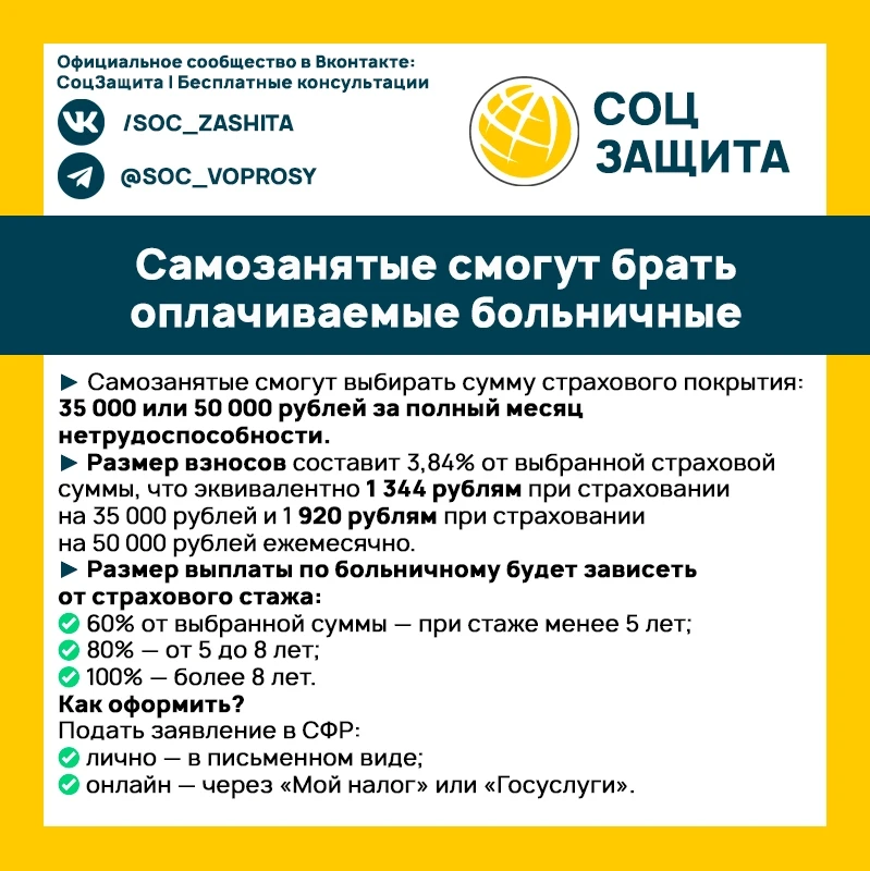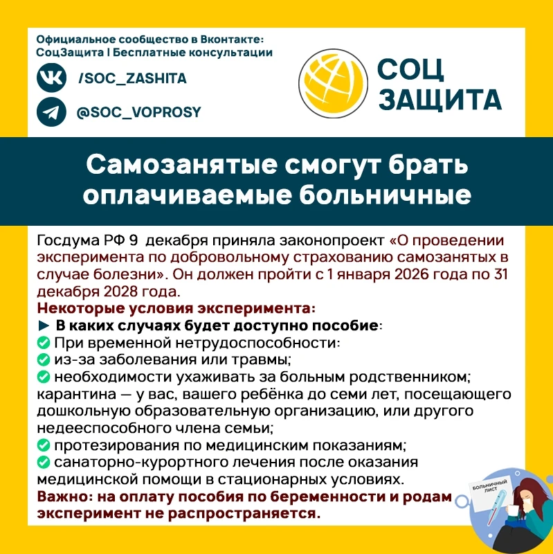 Самозанятые смогут брать оплачиваемые больничные.