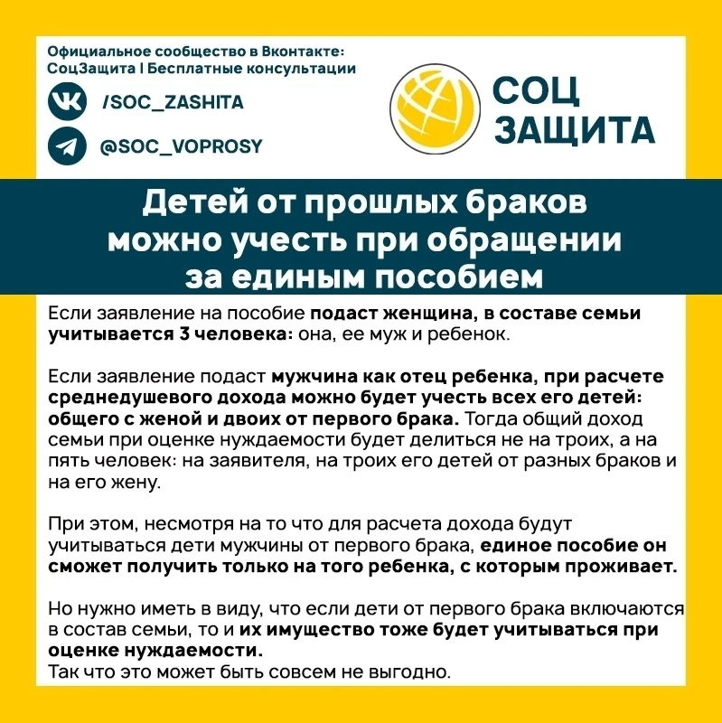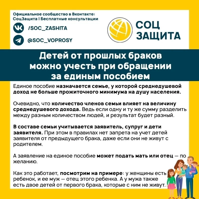 Включение детей от прошлых браков в состав семьи при оформлении единого пособия имеет значение для определения размера выплат.