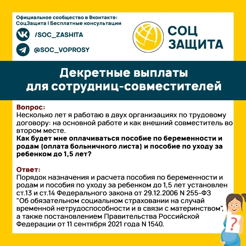 Декретные и пособие по уходу за ребенком до 1,5 лет при работе по совместительству?