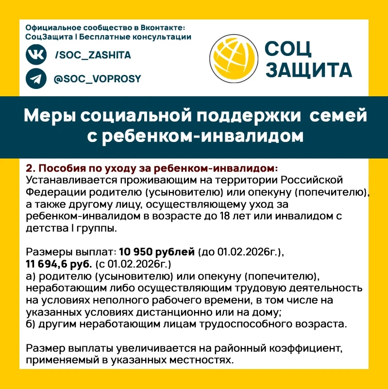 Льготы для детей-инвалидов и их семей в 2025 - 2026 годах.