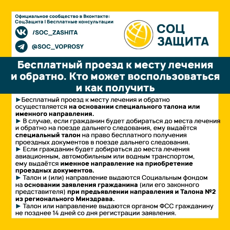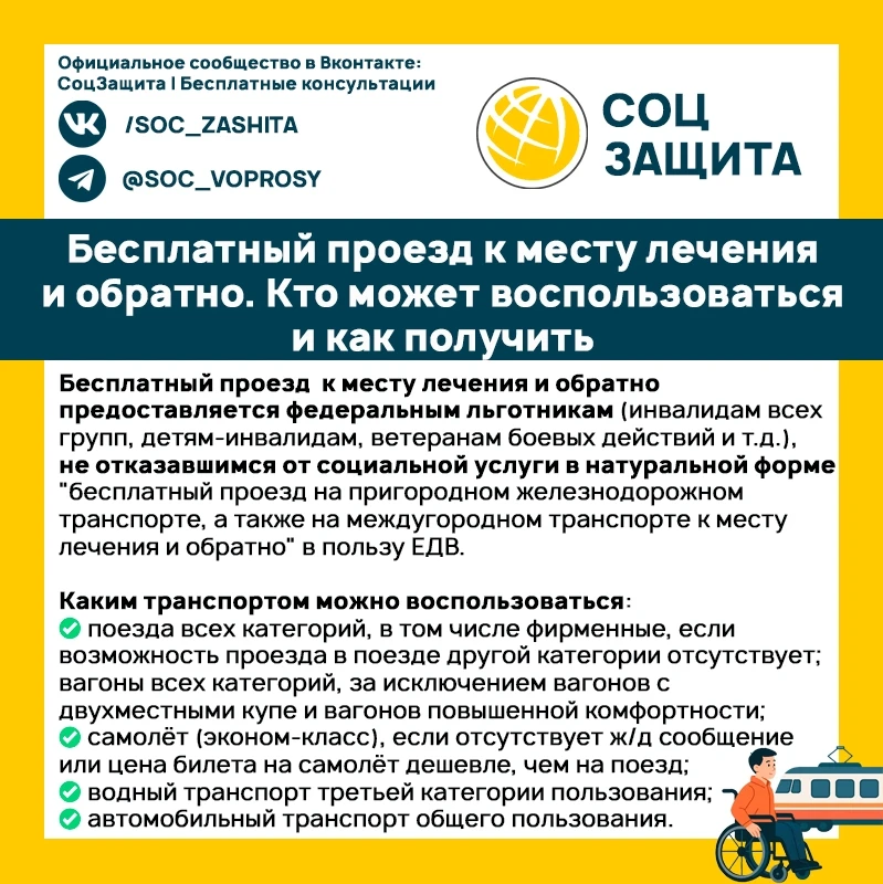 Бесплатный проезд к месту лечения и обратно. Кто может воспользоваться и как получить.