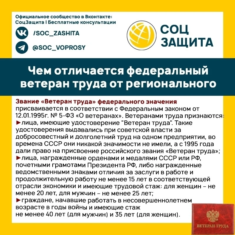 Разбираемся: чем федеральный статус ветерана труда отличается от регионального.