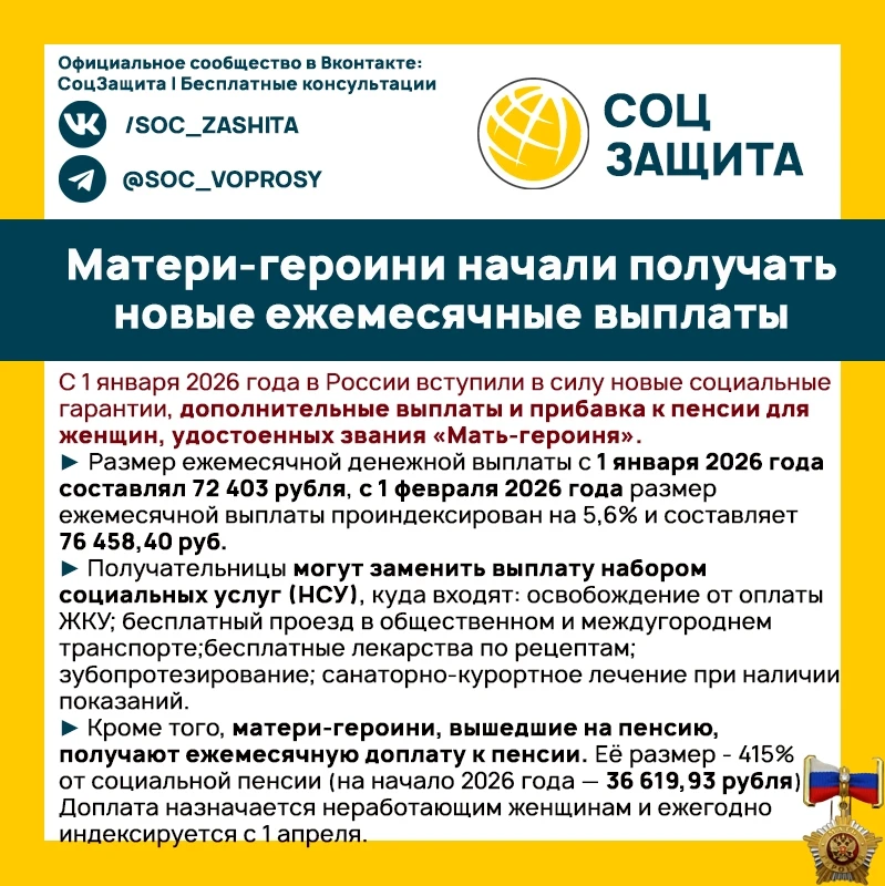 Матери-героини начали получать новые ежемесячные выплаты.
