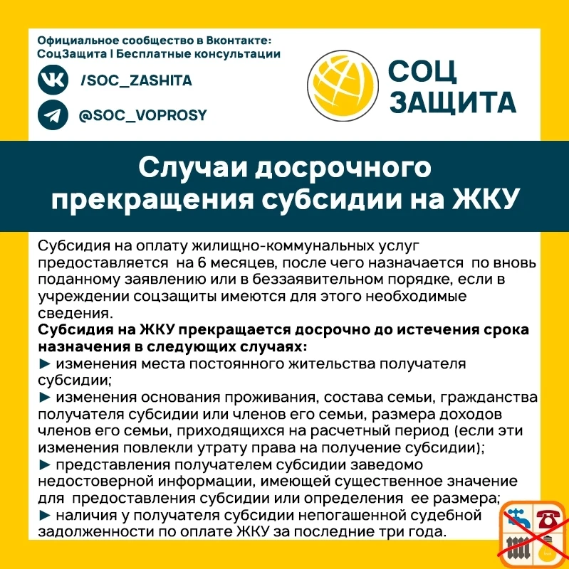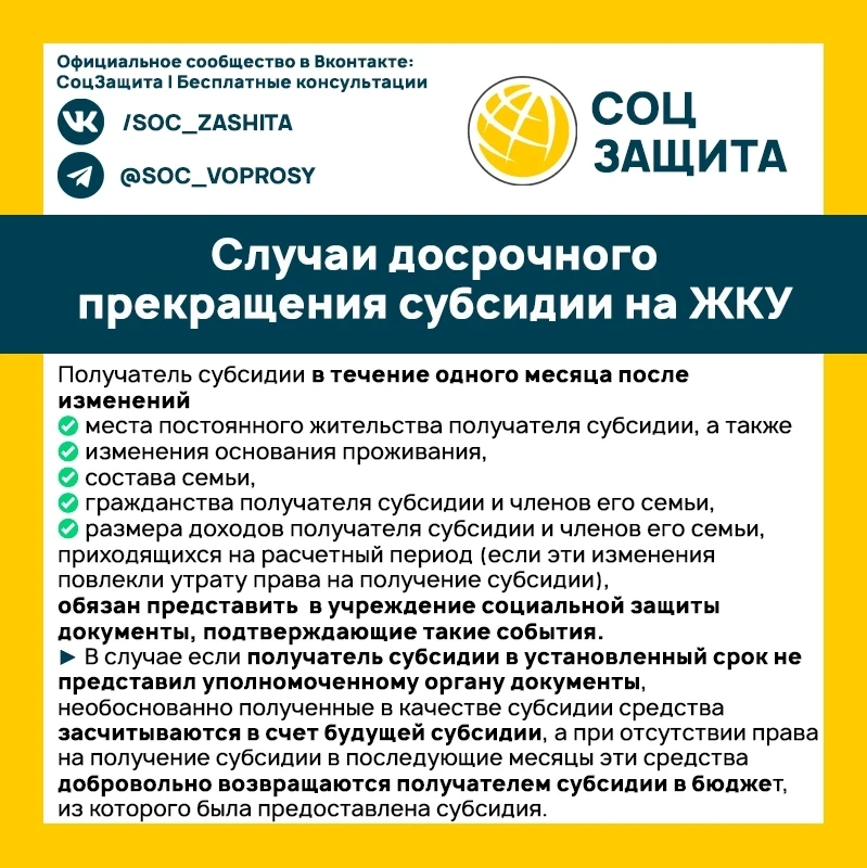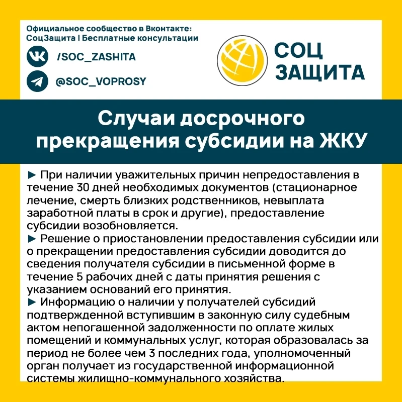 Выплата жилищно-коммунальной субсидии может быть прекращена досрочно. В каких случаях это происходит?