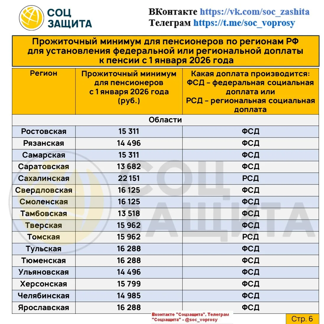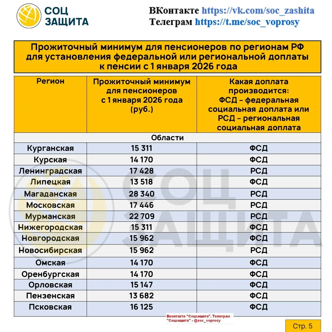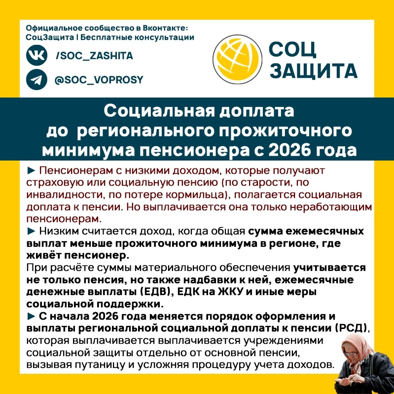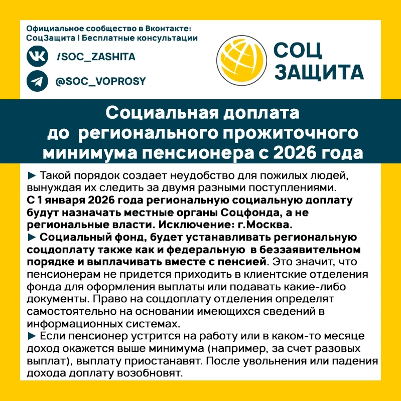 Социальные доплаты до уровня прожиточного минимума пенсионера по регионам РФ с 1 января 2026 года.