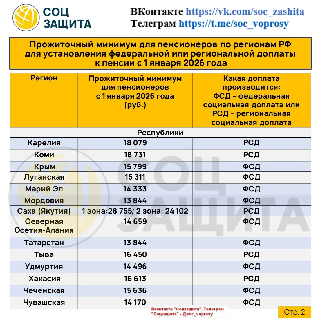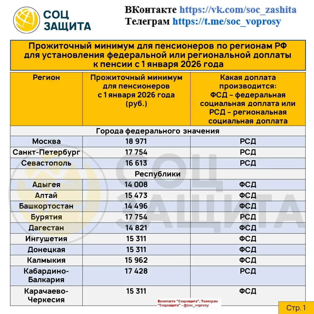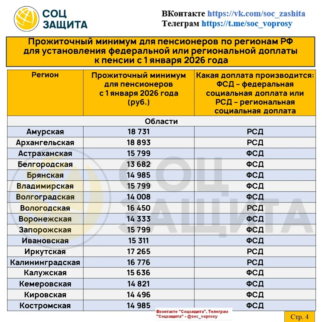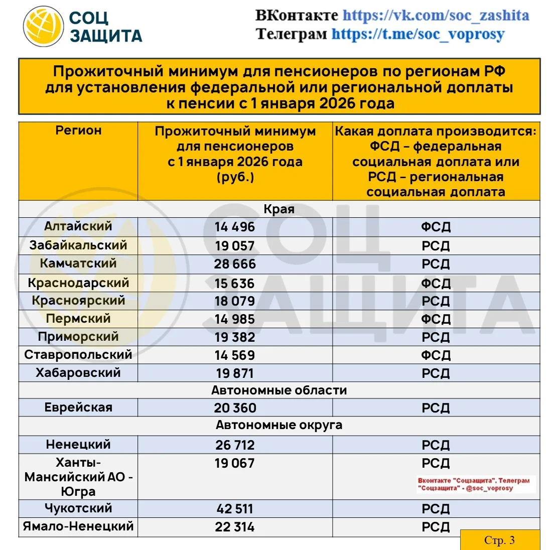 Социальные доплаты до уровня прожиточного минимума пенсионера по регионам РФ с 1 января 2026 года.