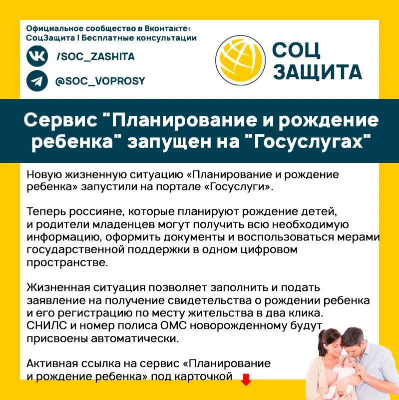 💥 Сервис "Планирование и рождение ребенка" запущен на "Госуслугах"