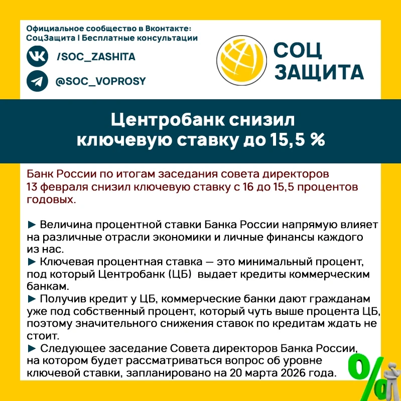 Банк России снизил ключевую ставку до 15,5%.