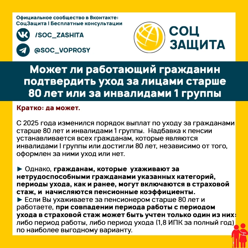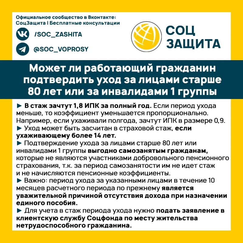 Может ли работающий гражданин подтвердить уход за лицами старше 80 лет или за инвалидами 1 группы?