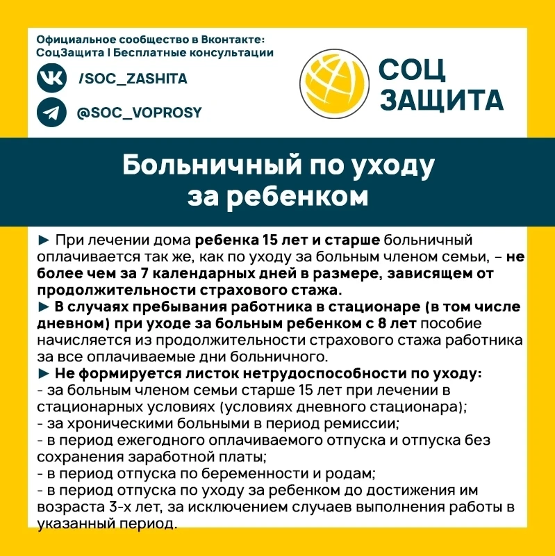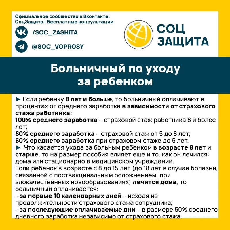 Родителям о больничном по уходу за ребенком.