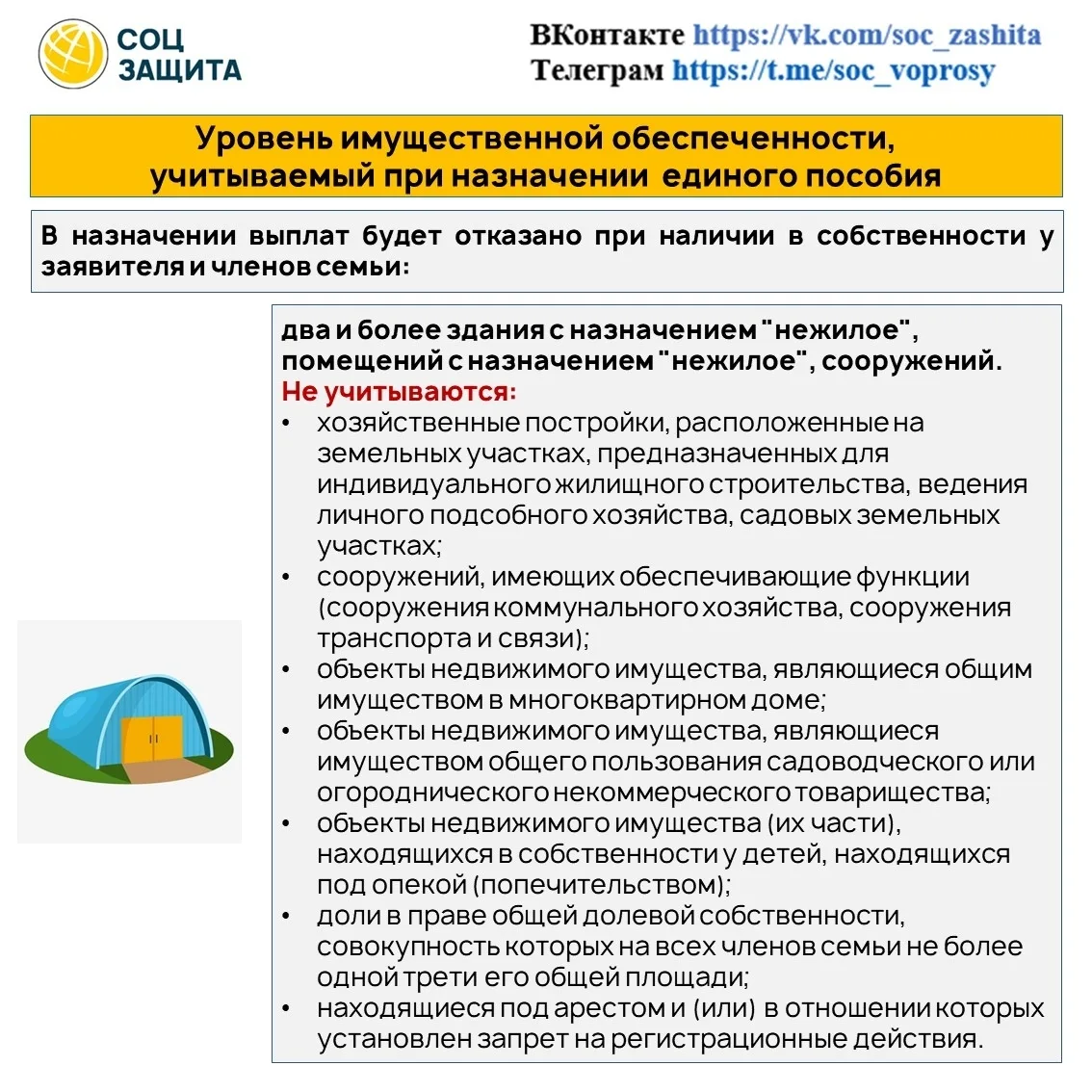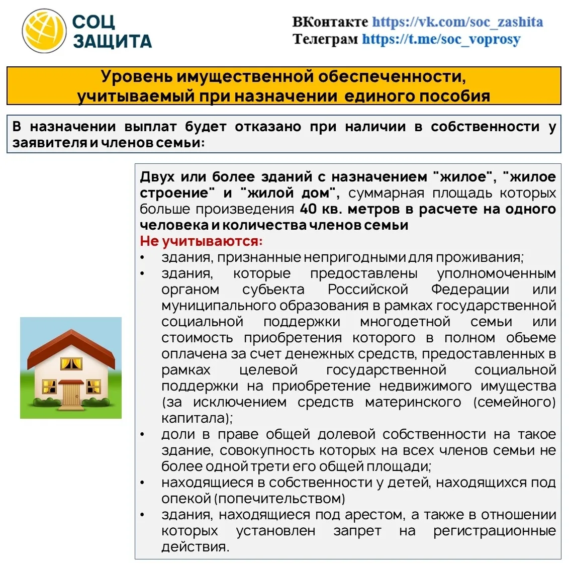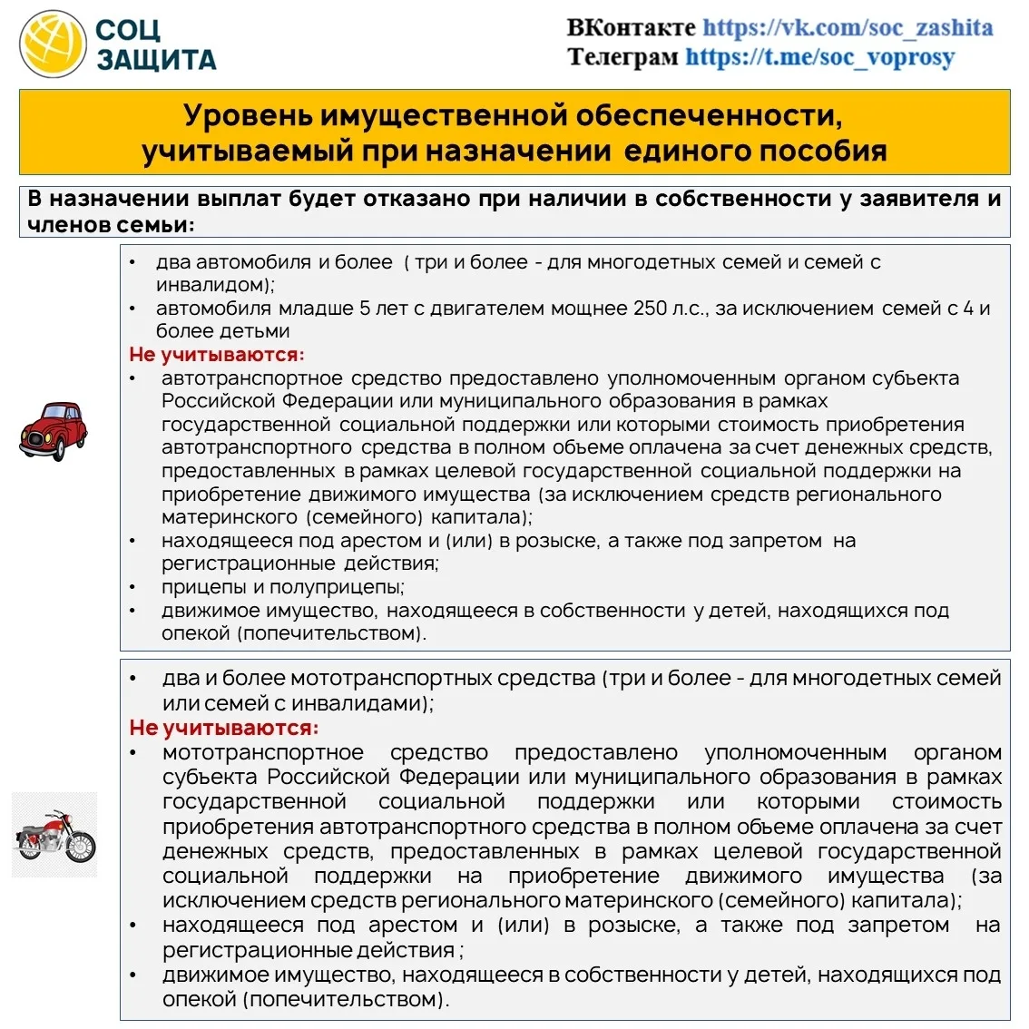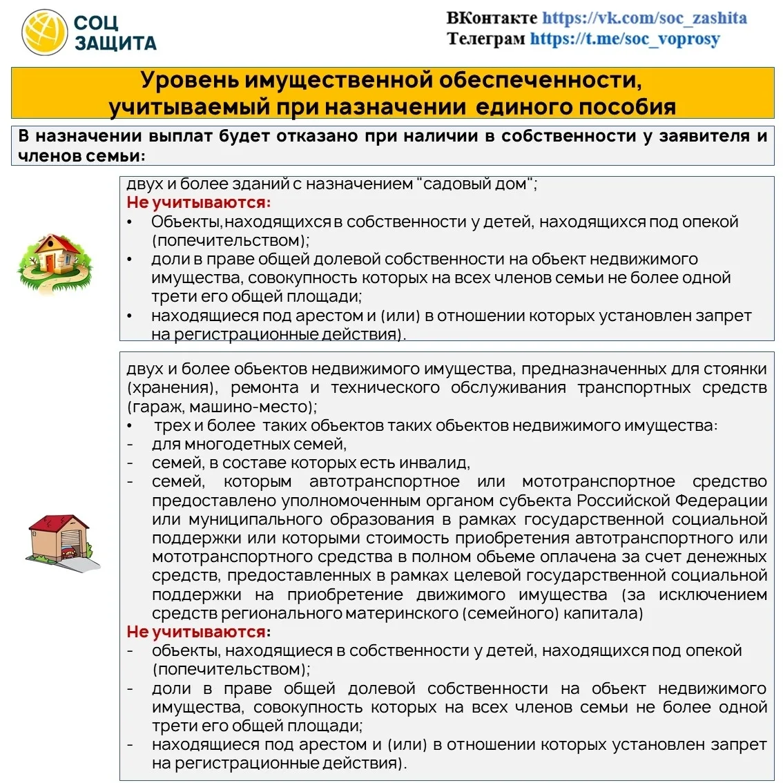 ✅ Имущество учитывают на дату подачи заявления на единое пособие.