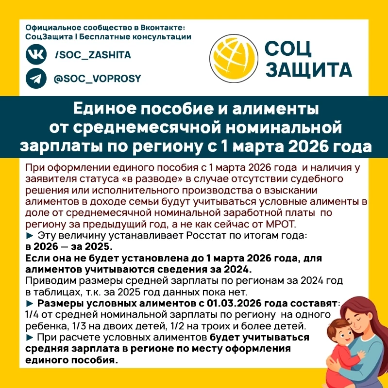 Алименты с 1 марта 2026 года: новые правила их учета при назначении единого пособия.