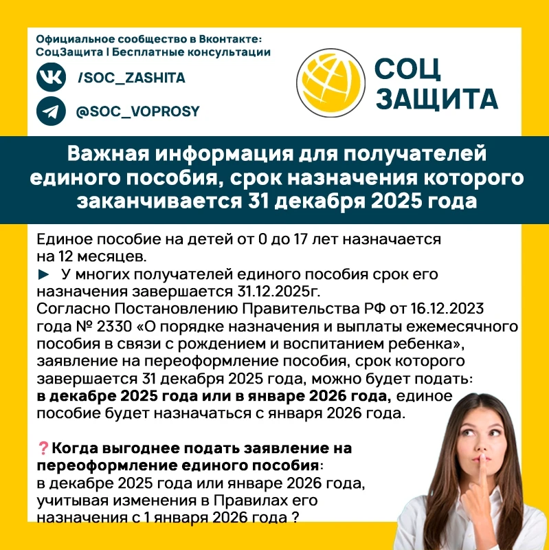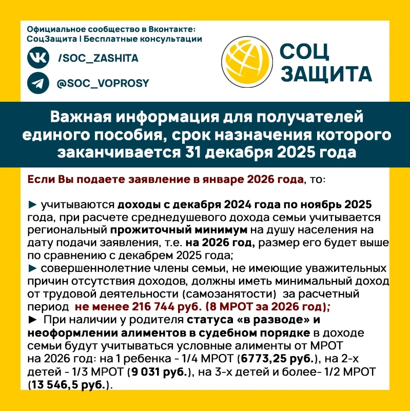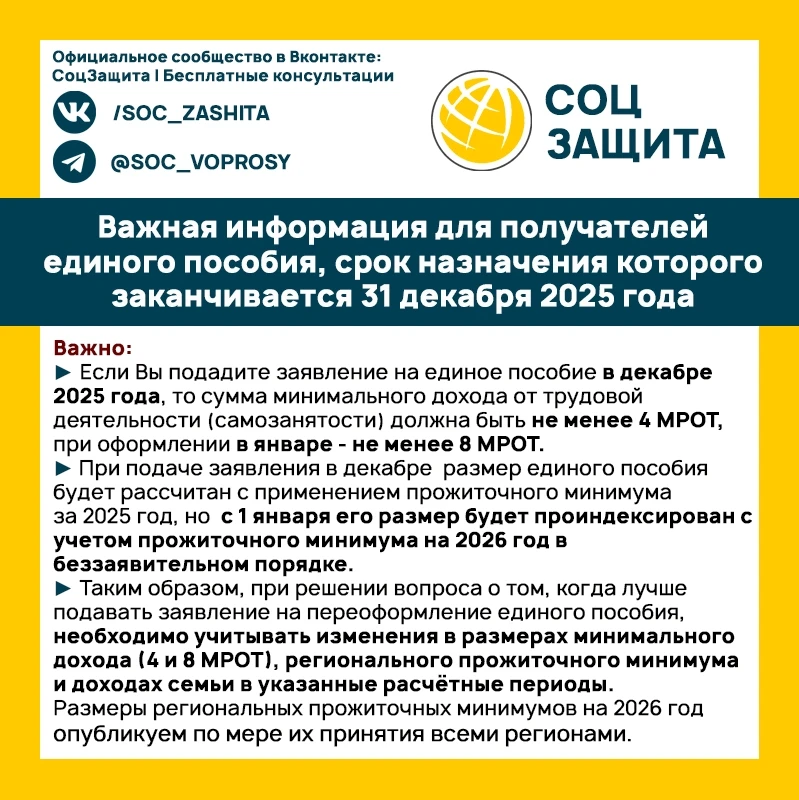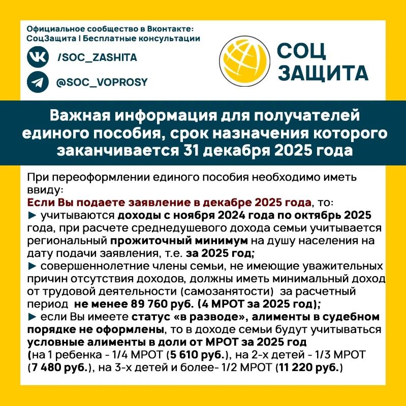 ⚡️⚡️⚡️ Важная информация для получателей единого пособия, срок назначения которого заканчивается 31 декабря 2025 года