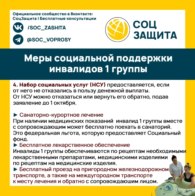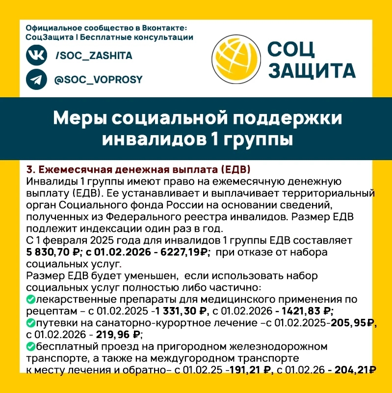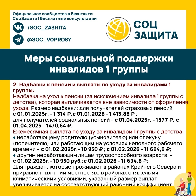 Что полагается инвалидам 1 группы в 2025 и 2026 годах?