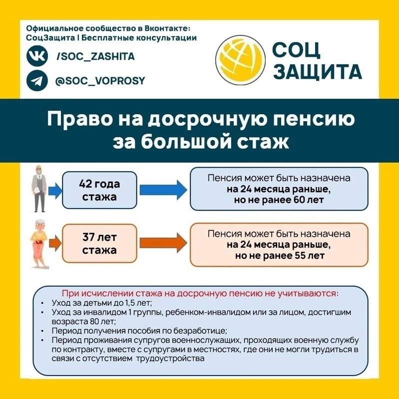 Длительный стаж дает право на досрочную пенсию.