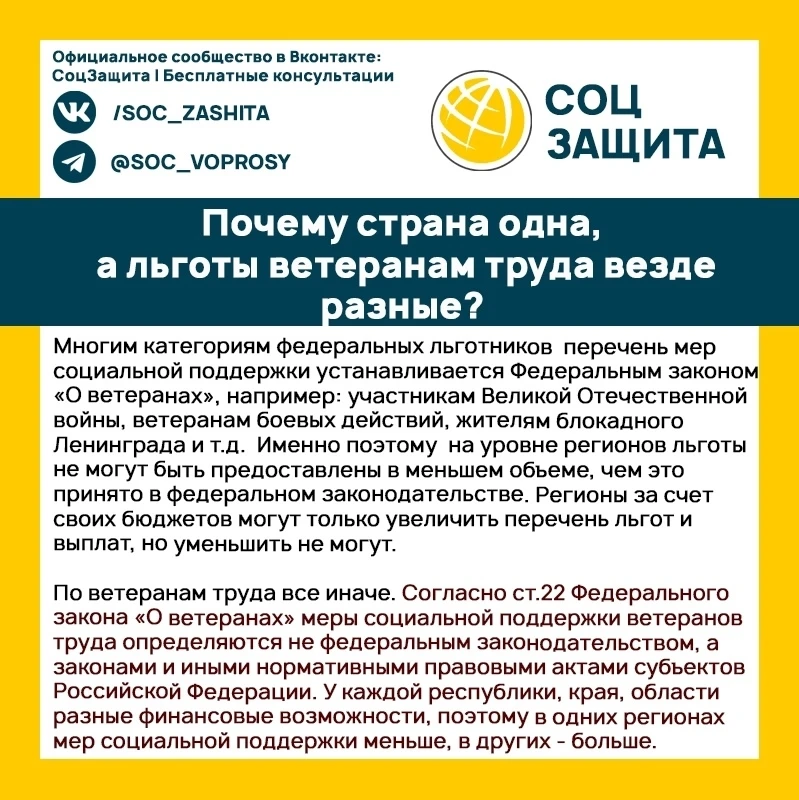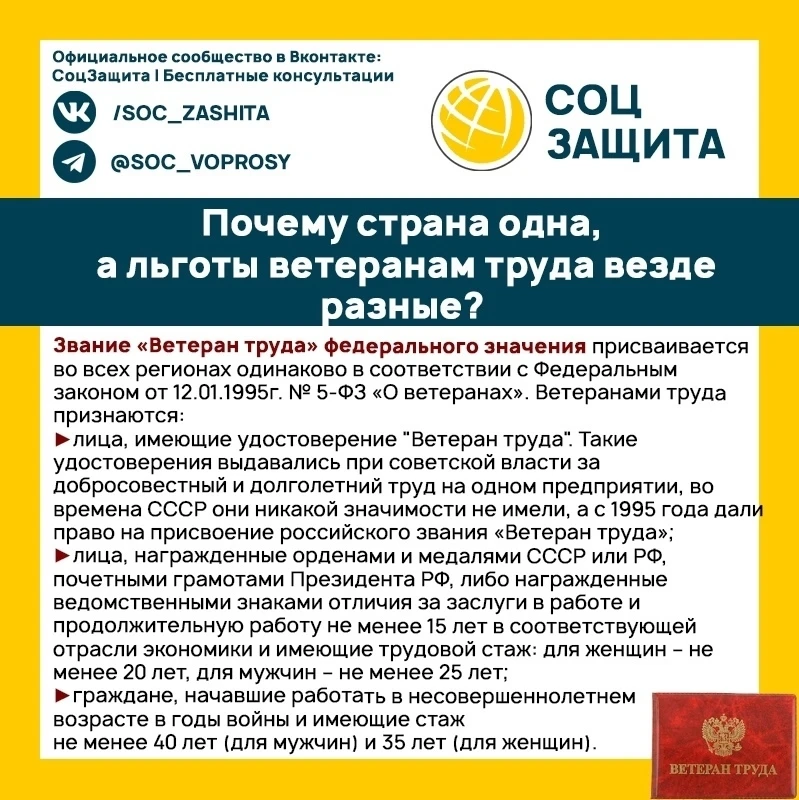Почему ветераны труда федерального значения в разных регионах получают неодинаковый набор льгот?