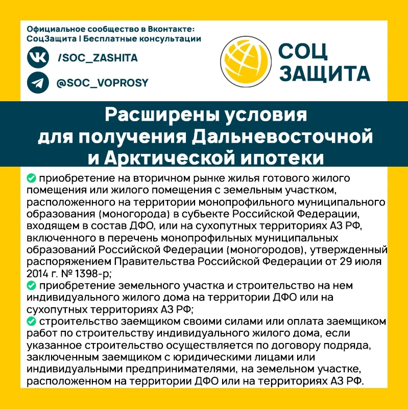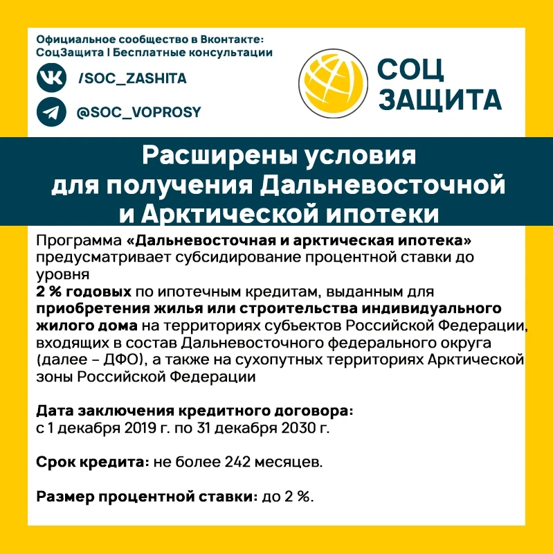 Расширены условия для получения Дальневосточной и Арктической ипотеки. Теперь ее смогут оформить многодетные семьи вне зависимости от возраста родителей.