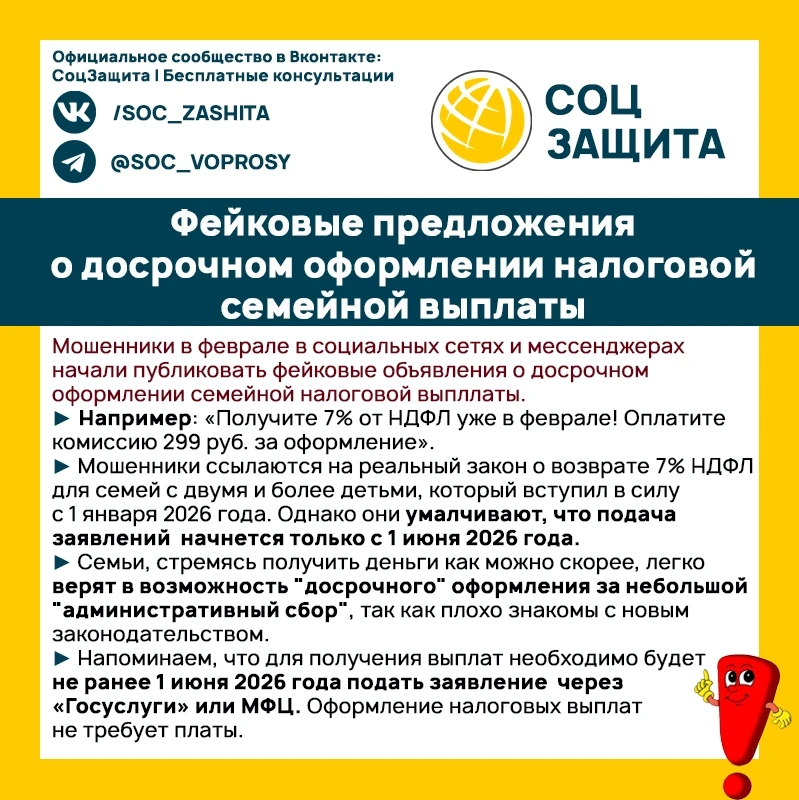 ⛔ Фейковые предложения о досрочном оформлении налоговой семейной выплаты.