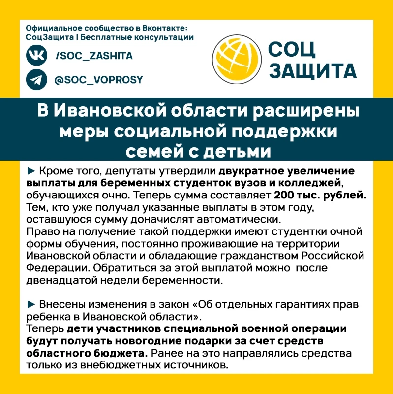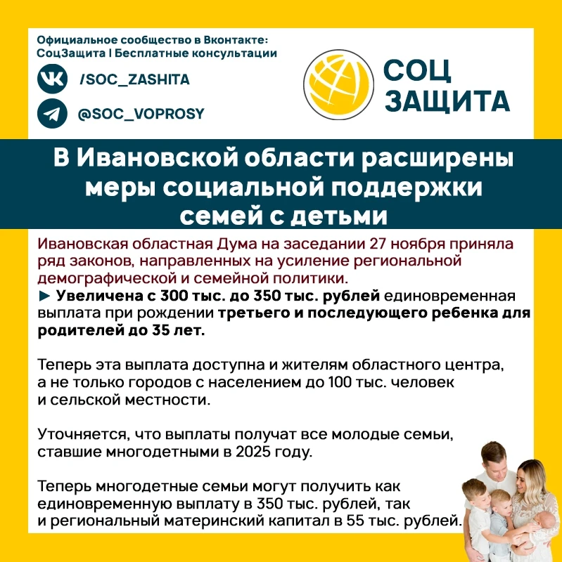 Отличный подарок к Дню матери! В Ивановской области расширены меры социальной поддержки семей с детьми!