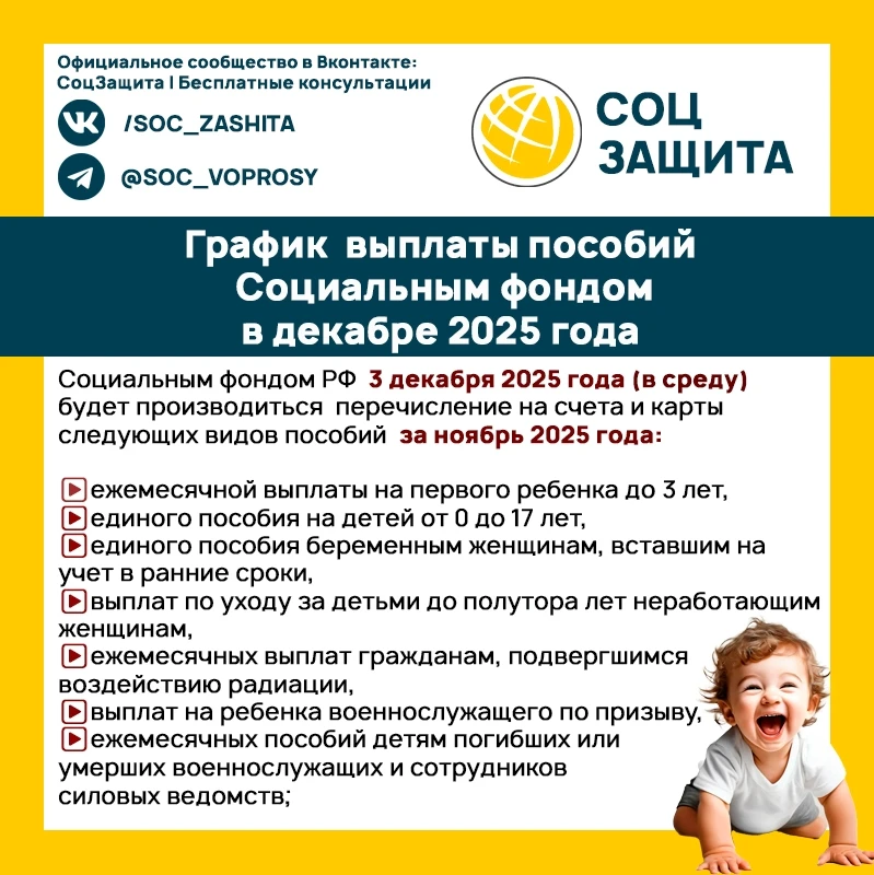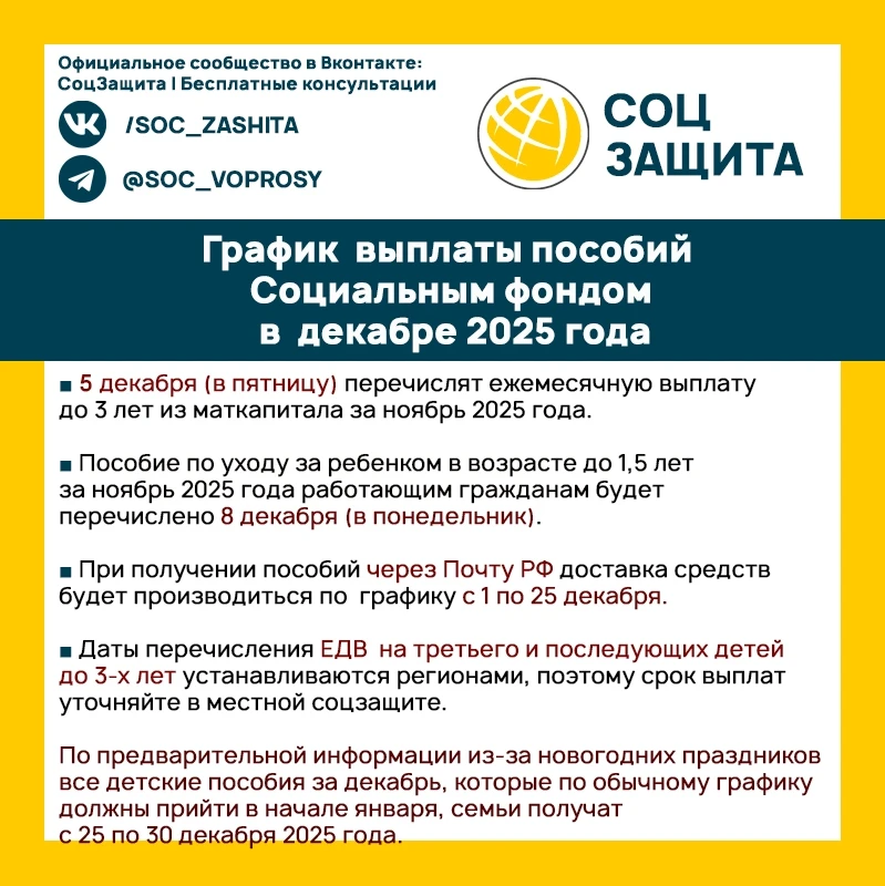 График выплаты пособий Социальным фондом в декабре 2025 года.