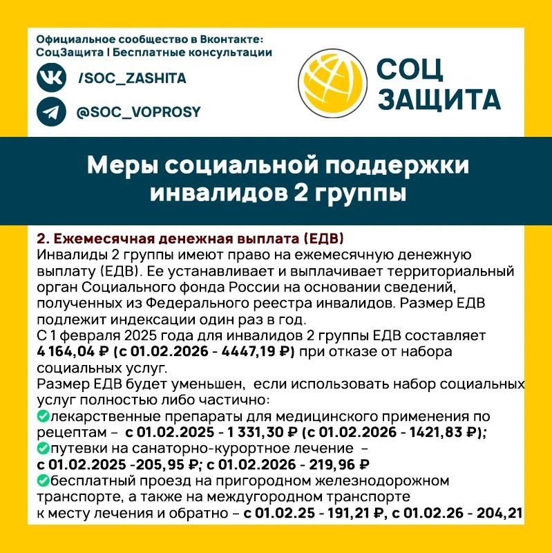 Меры социальной поддержки инвалидов 2 группы в 2025 и в 2026 годах.