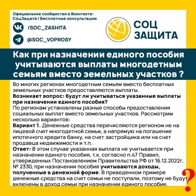 Если семья получила денежную выплату вместо земельного участка, будет ли она входить в доход при назначении единого пособия.