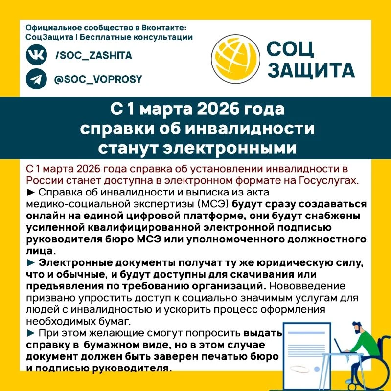 С 1 марта 2026 года справки об инвалидности станут электронными.