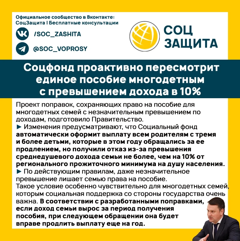 Соцфонд проактивно пересмотрит единое пособие многодетным с превышением дохода в 10%
