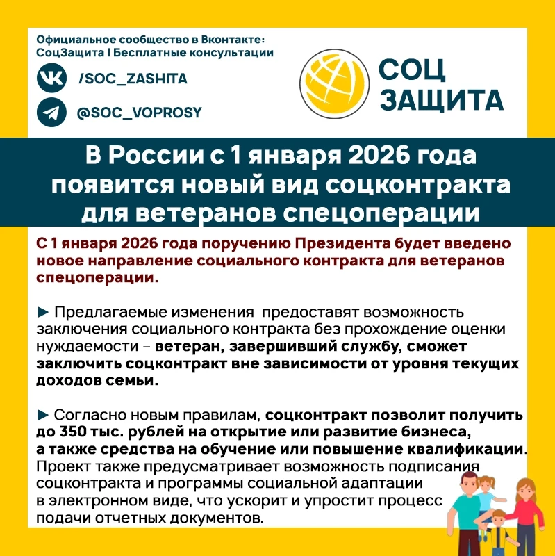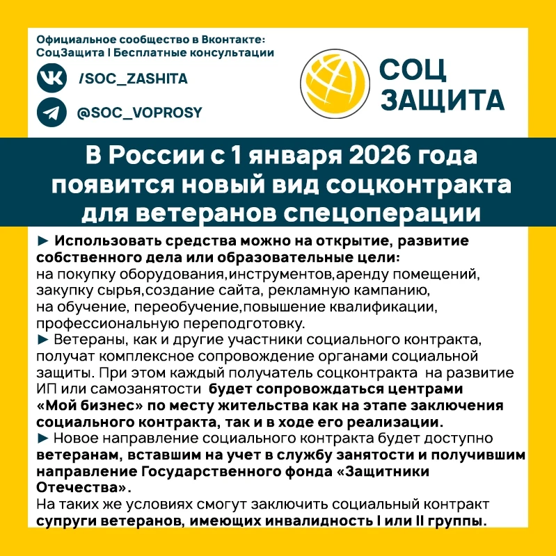 ⚡️ В России с 1 января 2026 года появится новый вид соцконтракта для ветеранов спецоперации.