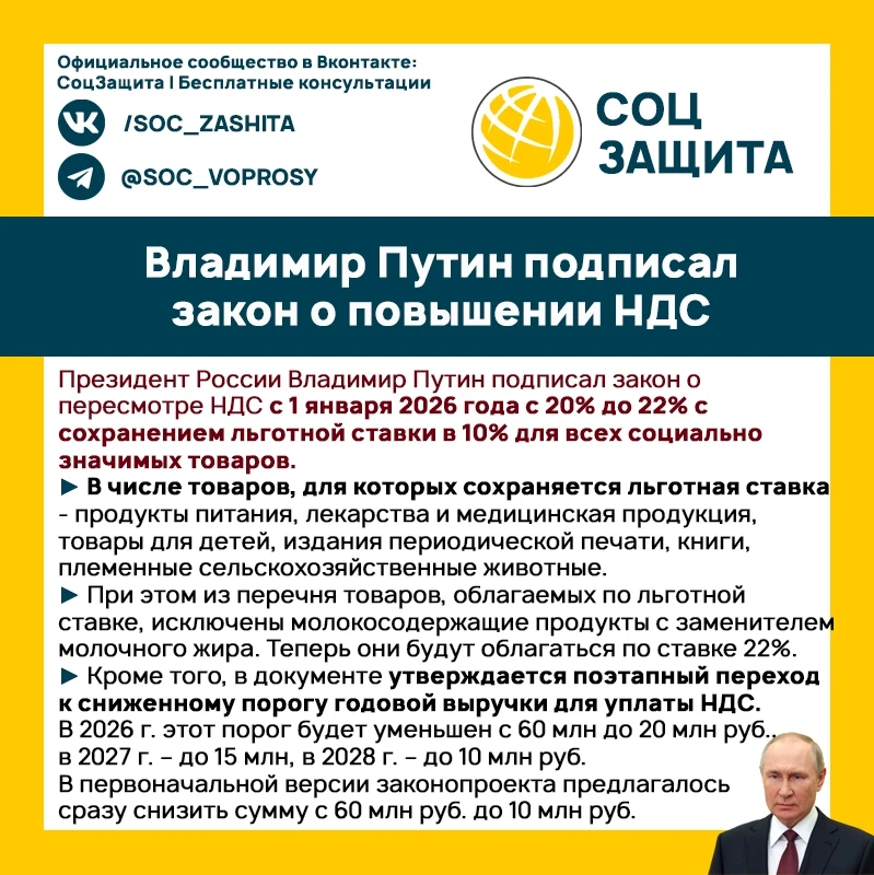 Владимир Путин подписал закон о повышении НДС.