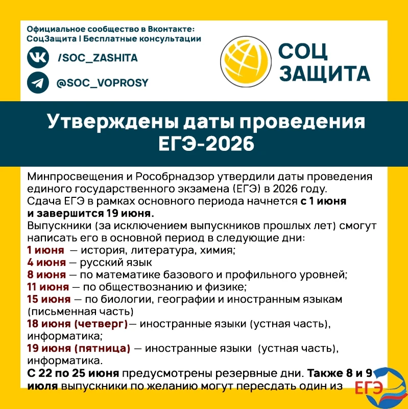 Утверждено расписание ЕГЭ и ОГЭ на 2026 год.