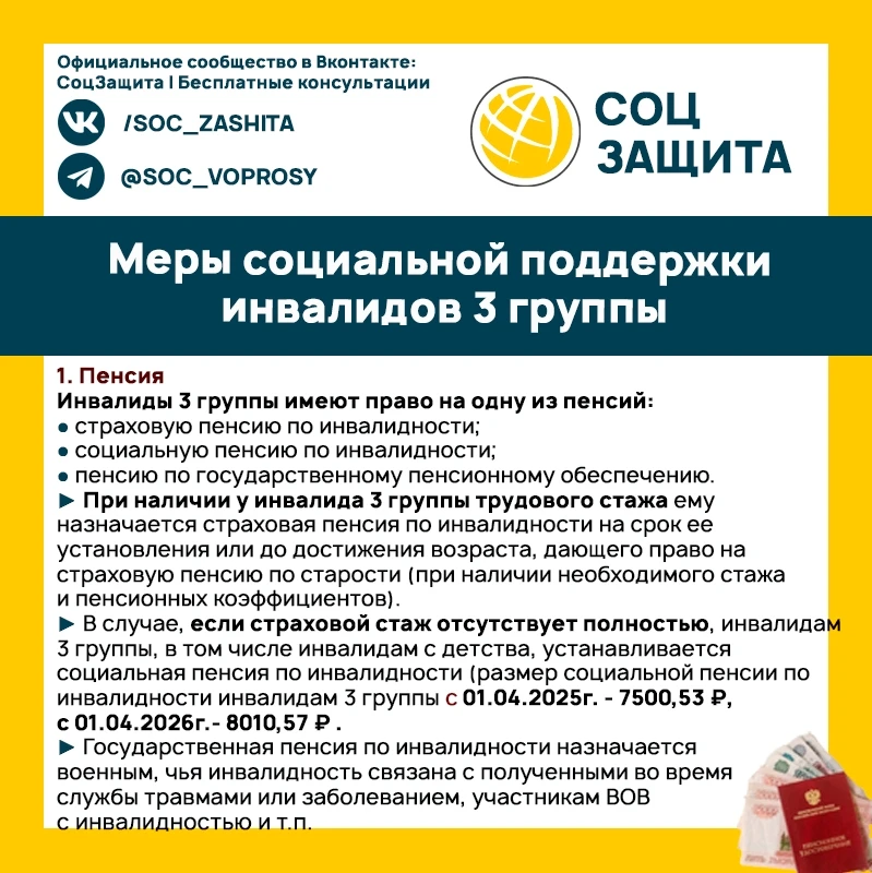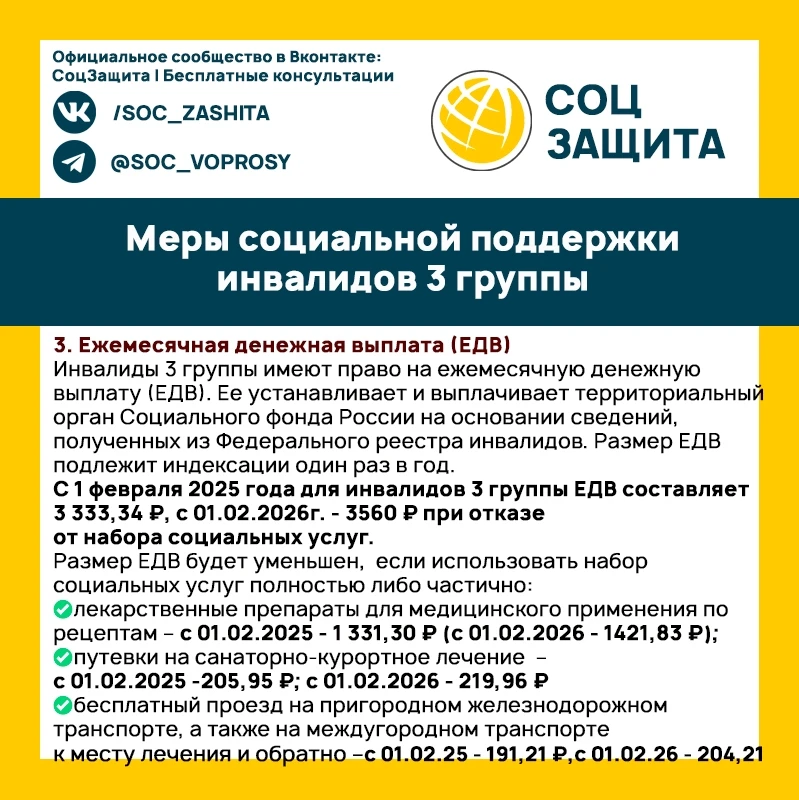 Что полагается инвалидам 3 группы в 2025 и в 2026 годах?