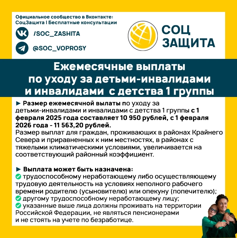Выплаты ухаживающим за детьми‑инвалидами и инвалидами с детства I группы: условия и размер.