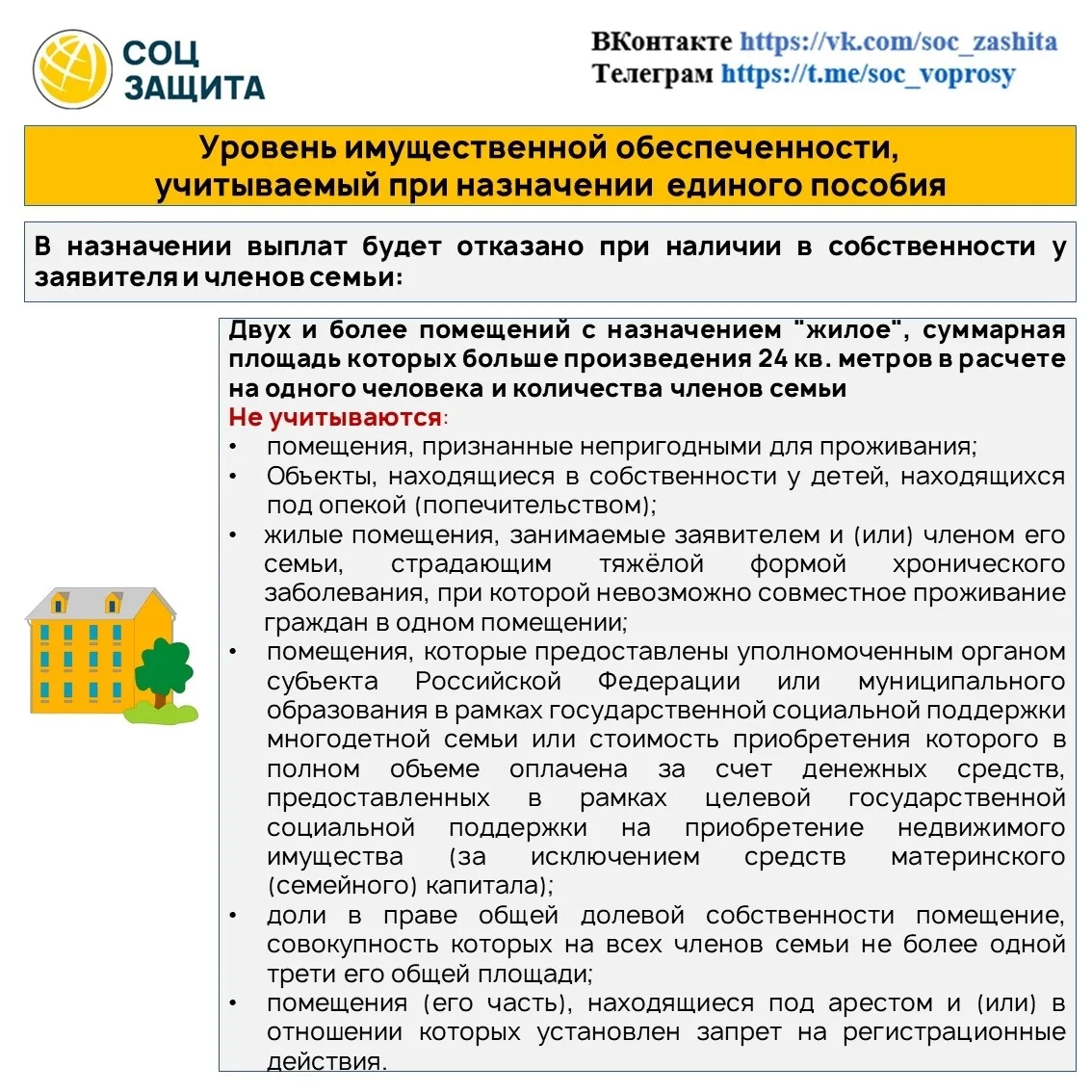 ✅ Учитывается имущество членов семьи, указанных в заявлении на единое пособие.