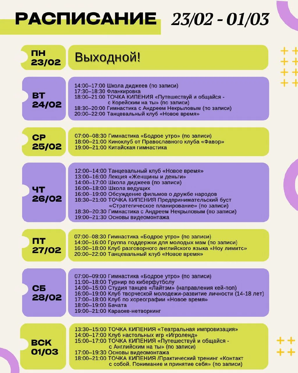 Афиша Дома Молодёжи на 23 февраля — 1 марта